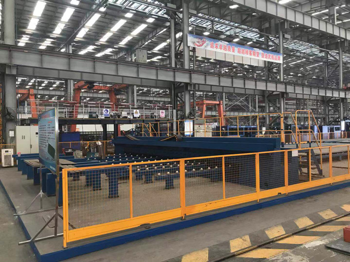 該設備主要由龍門綜合拼板架、物流傳送系統(tǒng)、焊接系統(tǒng)、數據監(jiān)控系統(tǒng)、集中潤滑系統(tǒng)、電氣控制系統(tǒng)、坡口機、焊接小車及電源和檢修機位手弧焊電源等組成,設備整體區(qū)域范圍10m*20m。采用正面液壓琴鍵壓緊、反面加水冷銅套襯墊成型槽的方式進行拼板對接焊接,采用雙絲氣保焊工藝,實現工件單面焊雙面成型。此單面焊雙面成型焊接工藝避免了傳統(tǒng)的兩面焊工件翻身問題,節(jié)省場地,降低作業(yè)強度,提高了焊接效率,實現流水線焊接,該拼板單面自動化焊接工作站各部分之間可協(xié)調動作,采用PLC可編程序控制器集中控制方式,整體設計緊湊,自動化程度高,便于操作。輔助機構配置齊全,可充分發(fā)揮整機的性能。