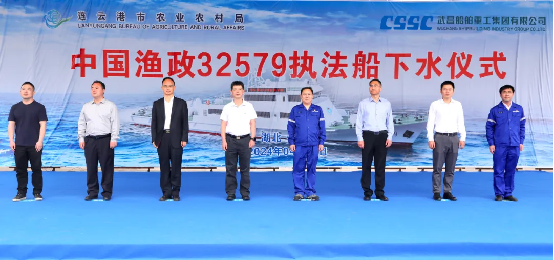 4月16日9點(diǎn)58分,由中國(guó)船舶集團(tuán)武昌造船建造的 新建300噸級(jí)漁政執(zhí)法船“中國(guó)漁政32579” 順利下水!連云港市委副書(shū)記、統(tǒng)戰(zhàn)部部長(zhǎng)盧剛,連云港市農(nóng)業(yè)農(nóng)村局副局長(zhǎng)李寶波,連云港市海洋與漁業(yè)綜合行政執(zhí)法支隊(duì)支隊(duì)長(zhǎng)張長(zhǎng)春,武漢市交通運(yùn)輸局港航事業(yè)發(fā)展中心檢驗(yàn)組涂航,武漢船舶設(shè)計(jì)研究有限公司執(zhí)行董事黃俊,中國(guó)船級(jí)社實(shí)業(yè)有限公司武漢分公司副總經(jīng)理吳章,武昌造船黨委委員、副總經(jīng)理田軍等相關(guān)單位領(lǐng)導(dǎo)及嘉賓出席下水儀式。