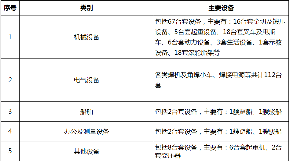 備注:機械設備、電氣設備、船舶、辦公及測量設備等四項內容按照每噸的單價進行報價;
